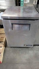 This True TWT-27-HC one-section worktop refrigerator is great for prepping ingredients, mixing in a blender, and slicing meats and cheeses. It has a self-closing, positive seal door that has a removable, magnetic gasket and a 12-inch recessed handle for comfort. Its top, sides, and front are made of stainless steel, while its interior is constructed of aluminum with a clear coat to resist scratches. Coved corners are built into the stainless steel floor and do not have crevices that collect debris. Structure is added by the foamed-in-place polyurethane insulation.