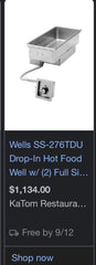 Food Warmer, top-mount, built-in, electric, 12" x 27" pan opening with drain, wet/dry operation, stainless steel interior, Wellslok, cULus, 120v/60/1ph