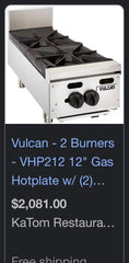 $1000 / Vulcan Counter Top 2 Burner Stove / Natural Gas / Can Be Converted To Propane