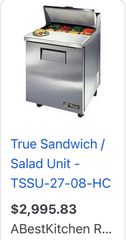 $1200 True TSSU-27-08-HC 27" Sandwich/Salad Prep Table w/ Refrigerated Base, 115v