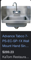 $150ea. Restaurant Handsink / Stainless Steel Sink / Commercial Sink / NSF Certified