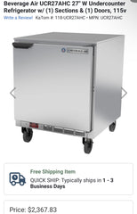 $1600 / 27” Beverage Air Under the Counter Refridgerator / Quality Unit / Verified by Licensed Technitican