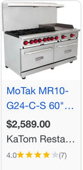 $2000 / MoTak MR10-G24-C-S 60" 6 Burner Gas Range w/ Griddle & (2) Standard Ovens / Restaurant Equipment
