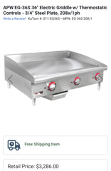 $2200 / 3 Ft Electric Flatgrill / Works Great / Tested by Licensed Tech / Restaurant Equipment
