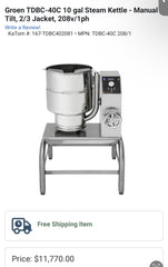 $2200 / Groen 10Gal Steam Kettle / Quality Condition / MDN:TDBC-40 / 3 PH / Ready For Pickup or Delivery / Restaursnt Equipment