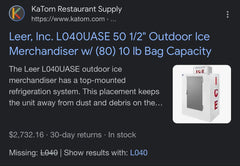 $2400 OBO / **NEW**Leer Ice Mercandiser L040 / Great Condition / Pickup or Delivery