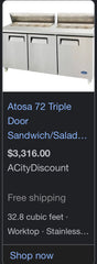 $2500 / Atosa 3 Door Flip Top Sandwich Prep Table / Amazing Condition