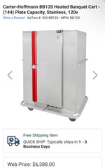 $2500 / Carter-Hoffmann Heated Banquet Cart / Cabinet Warmer / Catering Equipment / Restaurant Equipment