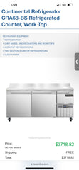 $2500 / Continental Refrigerator CRA68-BS Refrigerated Counter, Work Top
