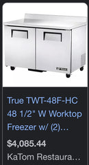 $2500 OBO / TRUE 48in Work Top Freezer / Excellent Condition / Certified by Licensed Tech / Restaurant Equipment