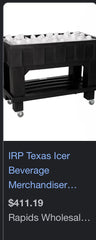 The Texas Icer from Iowa Rotocast Plastics is great for remote bars, convenience stores, or parties. The higher base on this beverage merchandiser reduces the need to bend to fish out products. Heavy duty drain assembly. 16 quart reservoir. Convenient lower shelf. NSF.