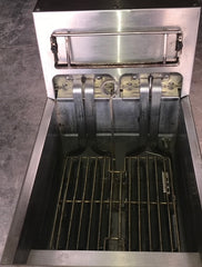 Because it has casters, the Frymaster FPRE114 commercial electric caster can be moved as needed for organization, sanitation, and maintenance. Its doors, cabinets, and frypot are made of stainless steel—a corrosion-resistant metal that defends against common wear from high-volume applications. Its single frypot measures 14 inches long by 151⁄2 inches wide and has an easy-to-clean, open pot structure. Twin fry baskets fit in the vat, and they can be secured in place on the basket rack and hanger.