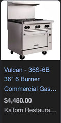 $3500 OBO / 6 Burner Vulcan Stove / Natural Gas / Quality Restaurant Equipment / Certified By Licensed Tech