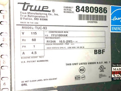 $4500 / True TUC-93-HC 93" W Undercounter Refrigerator w/ (3) Sections & (3) Doors,