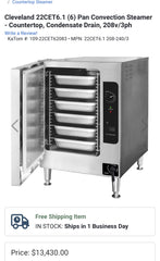$5000 / Clevland Countertop Steamer MN:22CET6.1 / NSF CERTIFIED / Ready For Delivery