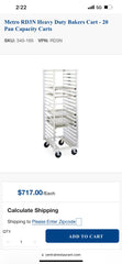 This Metro RD3N, also known as a bakers cart, comes with 5" casters. Two casters include brakes. This pass-thru, Metro RD3N is made of high strength Aluminum, and features double-riveted aircraft construction. This cart is built to withstand the bumps and bruises of everyday use. The Metro RD3N with 20 pan capacity features a pass through design. It can be loaded on one side and unloaded from the other. This bakers cart, Metro RD3N is lightweight and easy to handle. The cart is sanitary and easy to clean. The heavy duty Metro RD3N weighs 52 lbs. 211/2"Wx29"Dx693/4"H overall. This Metro RD3N features 3" slide spacing. This spacing allows for rapid cooling. This model is ideal for freezer and refrigerator use, bakeries and commissaries.We represent our listings as accurately as we can, so please contact with any questions or concerns before purchasing. We want to make you comfortable with your purchase. Thanks!