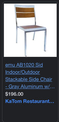 For strength and corrosion resistance, the emu AB1020 stacking side chair has an aluminum frame, and its back and seat are built with aluminum slats featuring a wood appearance. It's durable enough for indoor or outdoor use, and for storage, it can be stacked with as many as four chairs. PVC caps on the bottom of the feet prevent scuffing during movement. This chair comes in black and gray and measures 18.5 inches wide by 21 inches deep by 30.5 inches high.