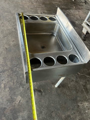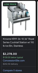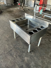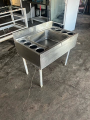 Designed to be used in bars, the Krowne KR19-36-10 ice bin keeps ice close to the drink prep area so bartenders can efficiently make drinks, while the 34-inch by 15-inch bin has a 12-inch depth and can hold 115 pounds of ice. Ice from the bin is used to cool the plate on the bottom of the bin, keeping soda lines chilled for soda guns. The ice also chills bottles in the holders, while foamed-in-place insulation retains cold air. Most of the components are made of durable stainless steel, which streamlines cleanup.