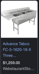 $850 / 75in 3 Compartment Sink / Great Size / Restaurant Sink