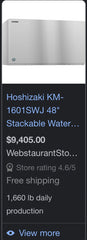 This Hoshizaki KM-1601SWJ water cooled ice machine can produce up to 1660 lb. of crescent cube ice per day, and with its stackable design you can put a second unit on top for even greater ice production in the same floor space! Its stainless steel exterior and evaporator are designed for years of dependable service, and the unit utilizes "H-Guard Plus" antimicrobial protection for increased sanitation. The KM-1601SWJ requires a 208-230V electrical connection.